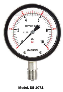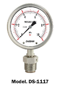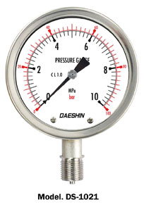 DS-1020 Series는 내 외부기구를 스테인리스강 재질로 구성되며 내식, 내마모성, 내구성이 요구되는 장소에서의 압력 측정에 적합하며, DS-1010 Series에 비하여 높은 내식, 내구성을 갖고 있어 압력계의 성능과 수명을 최대로 보장받을 수 있는 압력계이며 석유화학 등 각종 플랜트 현장에 쓰이며 부식성, 증기, 먼지가 많은 실외에서 사용에 적합한 압력계입니다.