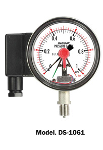 DS-1060 Series는 지시계에 접점 기구를 조립하여 넣은 것으로서 압력 지시는 물론, 내장되어 있는 접점 기구에 미리 설정시켜 놓은 압력에서 전기신호를 보내어 정보 및 제어를 할 수 있도록 설계 제작되어 있습니다.